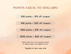 Turn your points into dollars! Click on the 'Redeem Points' option in the bottom-right corner to get a coupon for lace wigs. No purchase necessary. If you need help, please contact us at service@hairvivi.com.