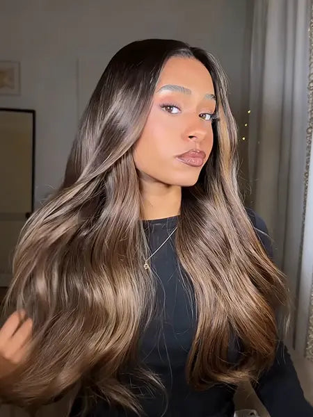 Perfect for Newbies! Catherine Wavy Brown Balayage Bangs